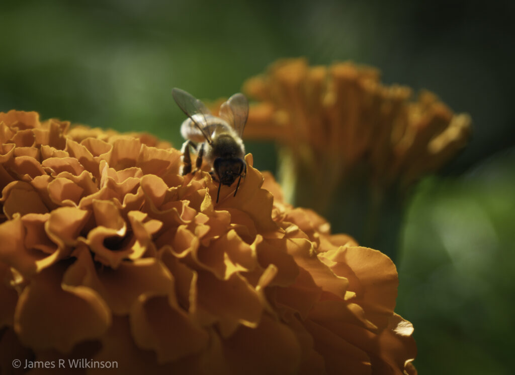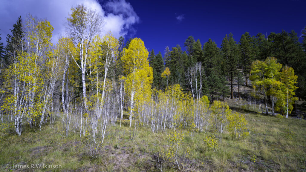 Finding a new Fall-themed image was hard but Jim shared a bee-on-marigold shot taken during a recent pumpkin patch visit. His other image of fall colors were from a drive to the Grand Canyon North Rim a few years ago.