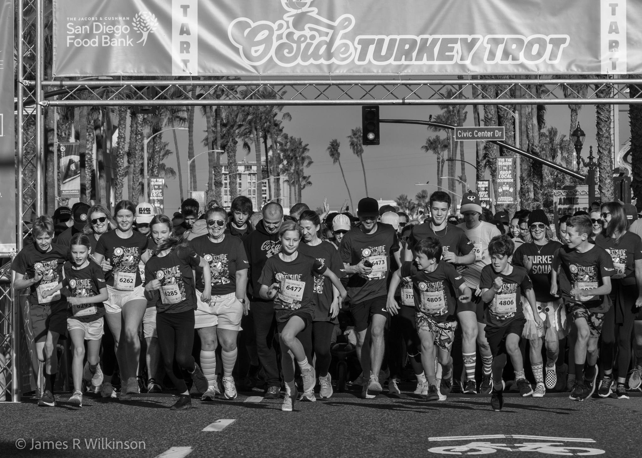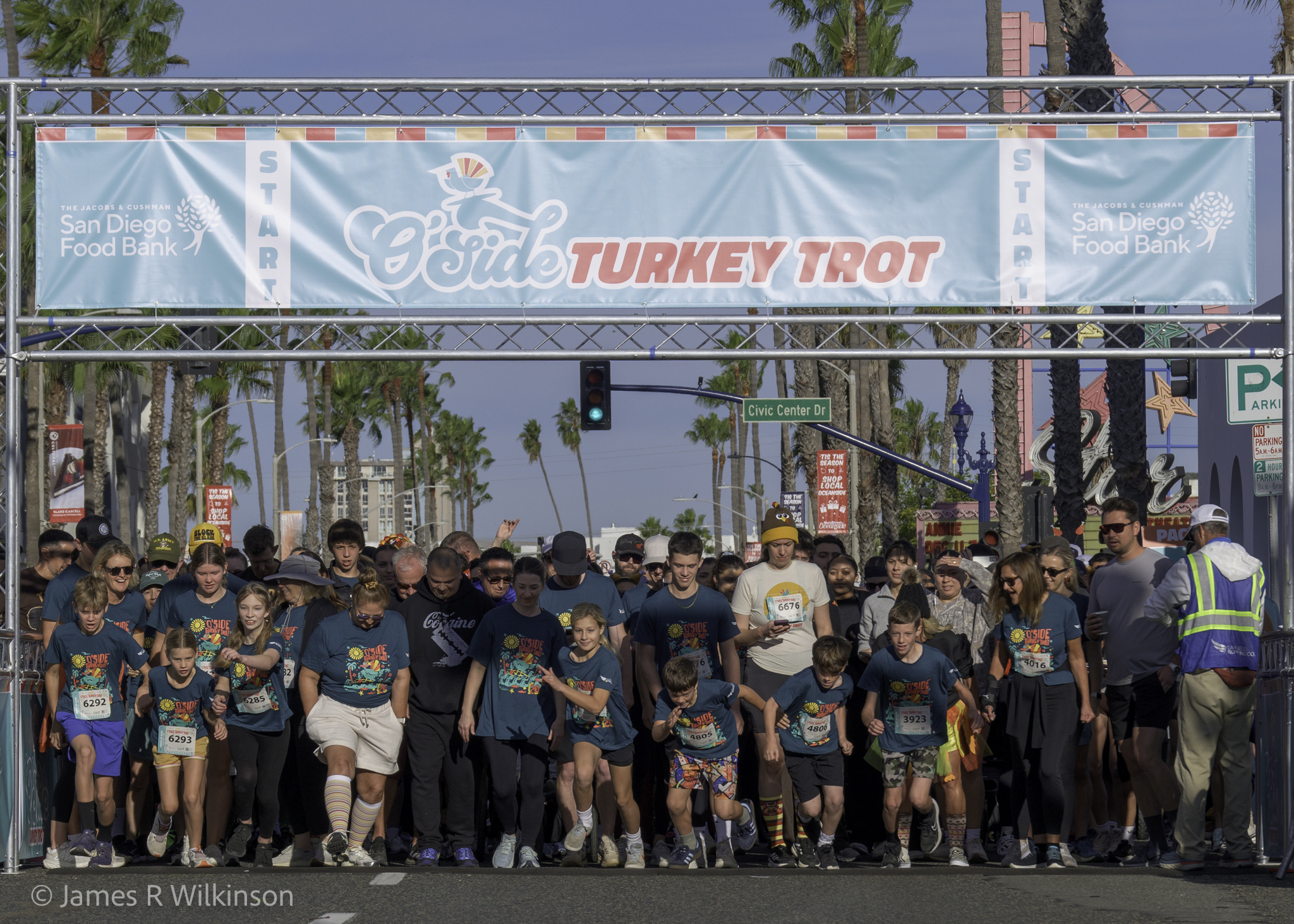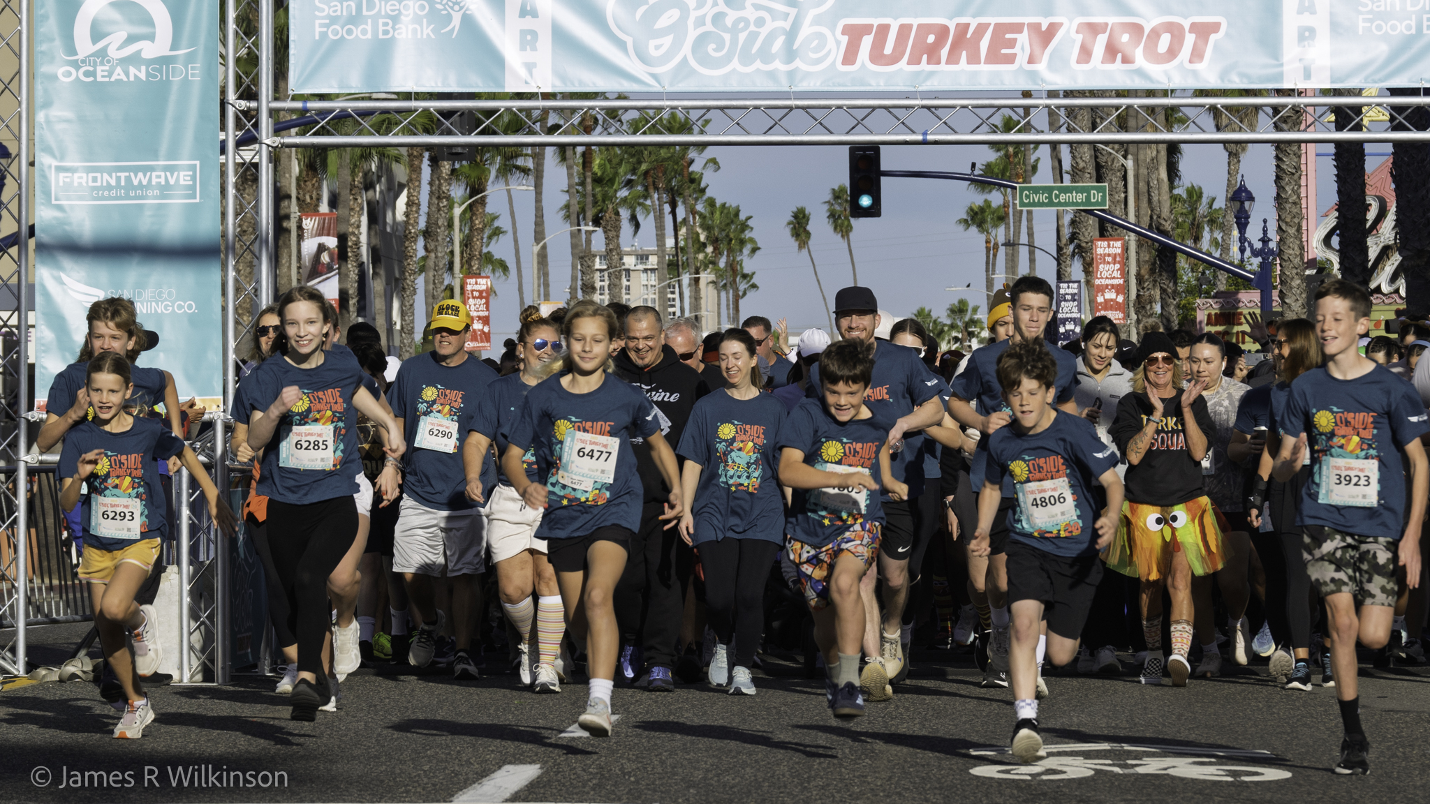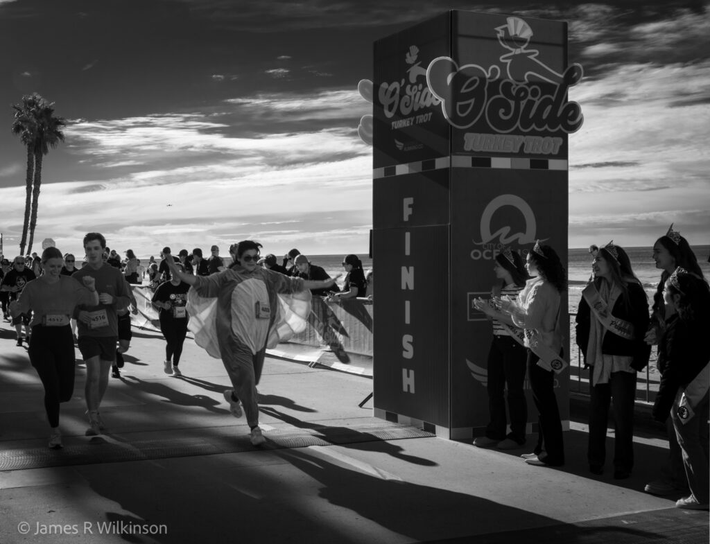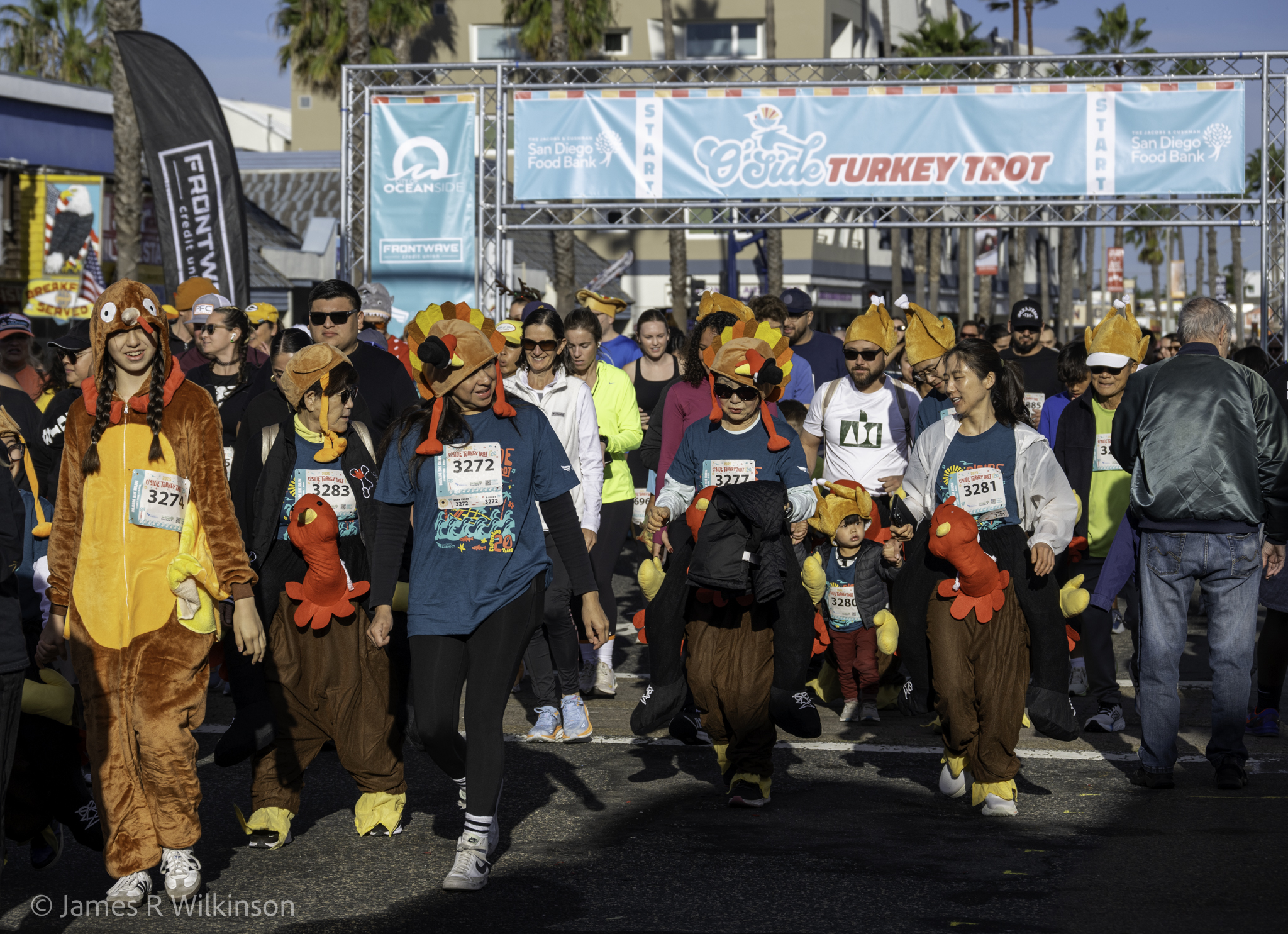 Jim was unable to get out in December so most of the images he shared this month were photos from the Nov 27 2025 Oceanside Annual Thanksgiving Holiday Turkey Trot . This is a tradition in Oceanside on Thanksgiving morning. This year’s course was 5k starting by the Oceanside Library and ending at the beach south of the pier. Thousands participated, groups, families, young & old. There are staggered starts (“heats”?) often separated by speed or group characteristics like strollers or walkers (non-runners). The 4 and under kids have a shorter course (1/5mi) down by the beach. Their enthusiasm was wonderful to capture.