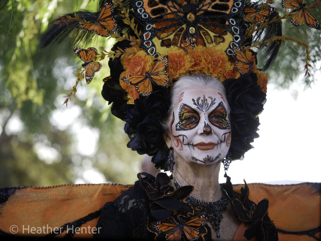 Heather – Heather loves her compact (micro-four-thirds) Panasonic GX85 and never ceases to amaze us with the quality of her images. She has a great eye and timing especially with people photos. Her Do Dah Parade portrait is particularly strong and we think worthy of submission to the SD Fair. She proposes a Pasadena meetup in Nov 2026 for the parade. Her other portrait was from our Dios de los Muertos meetup Nov 1st. Other images were weather-themed and had great depth. Her backup camera is an iPhone proving the best camera is the one you have handy.