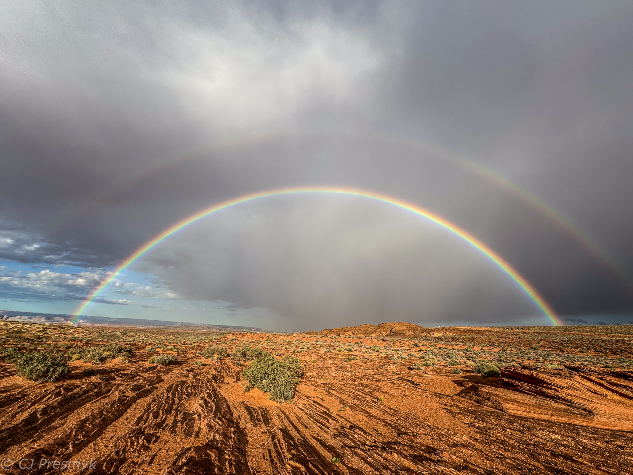 Cathy gets inspiration from multiple sources and is continually challenging herself. She’s been sharing images from her recent photography trip to Arizona & Utah. This month she shared an amazing double-rainbow taken over AZ’s Horseshoe Bend during a rain storm. An iphone is perfect for when it’s raining and you want to protect your bigger camera. She uses a Canon R6m2 mirrorless camera, Canon Rebel APS-C and an iPhone. A long exposure Christmas-themed ocean & pier shot at blue hour was a particular favorite. Plus a Christmas tree ICM (intentional camera movement) photo shows her creativity.